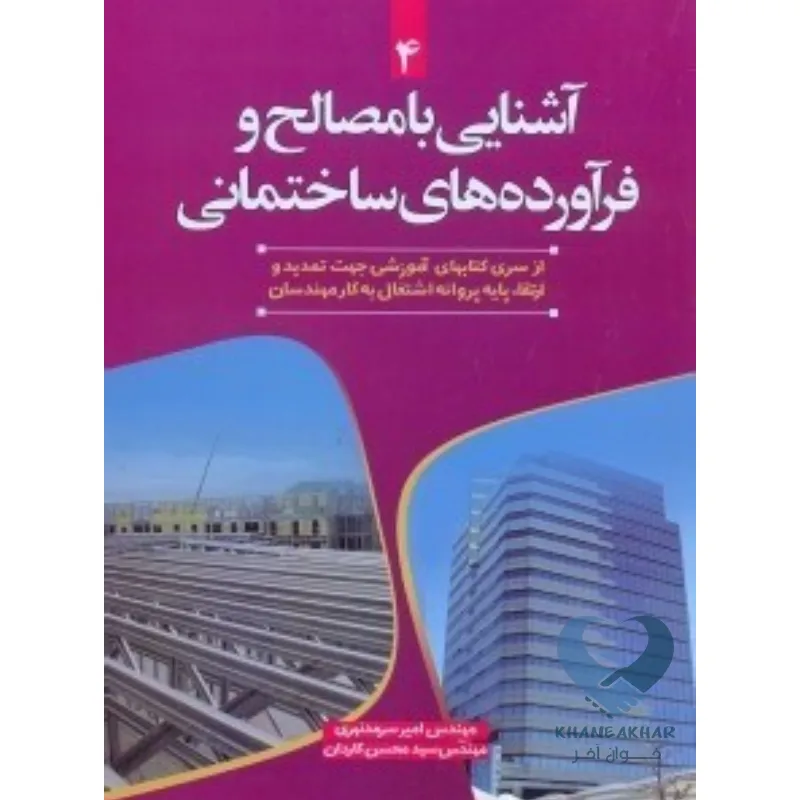 کتابی که در پیش رو دارید به نام آشنایی با مصالح و فرآورده های ساختمانی توسط مهندس امیر سرمد نهریو مهندس سیدمحسن کاردان نوشته شده است.