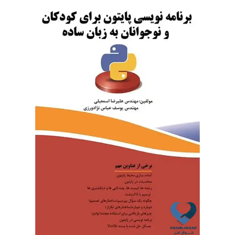 کتابی که در پیش رو دارید به نام برنامه نویسی پایتون برای کودکان و نوجوانان به زبان ساده که توسط مهندس علیرضا اسمعیلی و مهندس یوسف عباس نژاد ورزی نوشته شده و انتشارات فن آوری نوین آن را چاپ و روانه بازار کرده است.