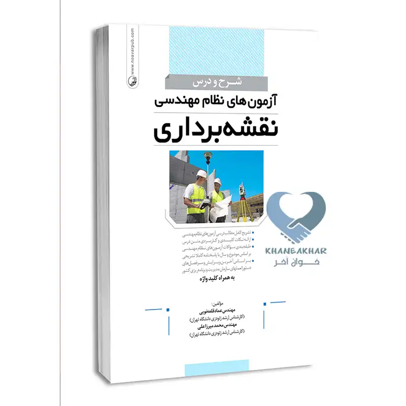 کتاب شرح و درس آزمونهای نظام مهندسی نقشهبرداری مهندس عماد قلعه نویی و مهندس محمد میرزاعلی در انتشارات نوآور به چاپ رسیده و علاقه مندان میتوانند این کتاب را از سایت خوان آخر تهیه نمایند.