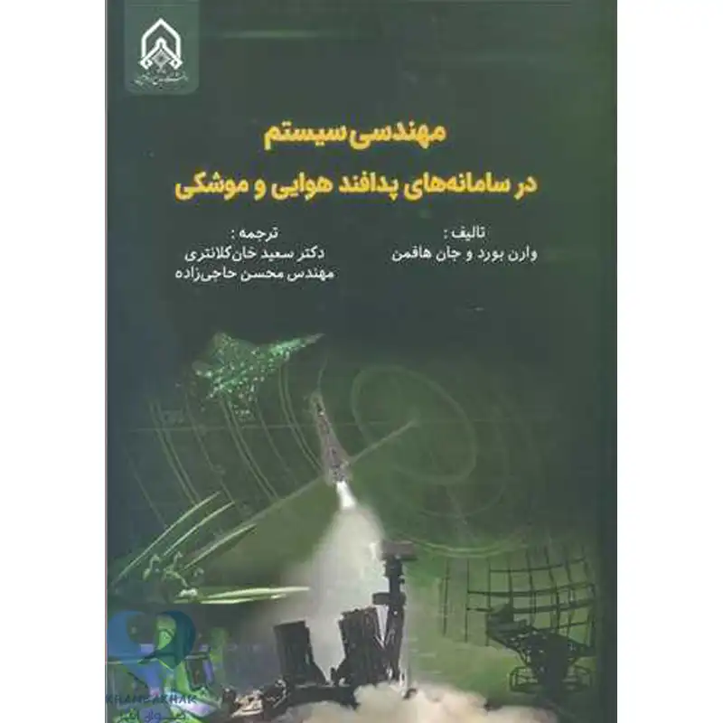 کتاب مهندسی سیستم در سامانه های پدافند هوایی و موشکی نوشته وارن بورد و جان هافمن ترجمه دکتر سعید خان کلانتری و مهندس محسن حاجی زاده توسط انتشارات دانشگاه جامع امام حسین(ع) به چاپ رسیده است. و علاقمندان میتوانند این کتاب را از سایت خوان آخر تهیه نمایند.