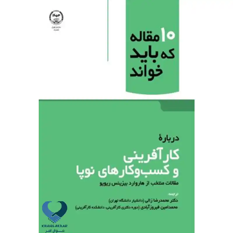 کتابی که در پیش رو دارید به نام 10 مقاله که باید خواند درباره کارآفرینی و کسب و کار های نوپا (مقالات منتخب از هاروارد بیزینس ریویو) که توسط دانشگاه هاروارد نوشته شده و به همت دکتر محمدرضا زالی و محمدامین فیروز آبادی به فارسی ترجمه شده و انتشارات سازمان جهاد دانشگاهی تهران آن را چاپ و روانه بازار کرده است.